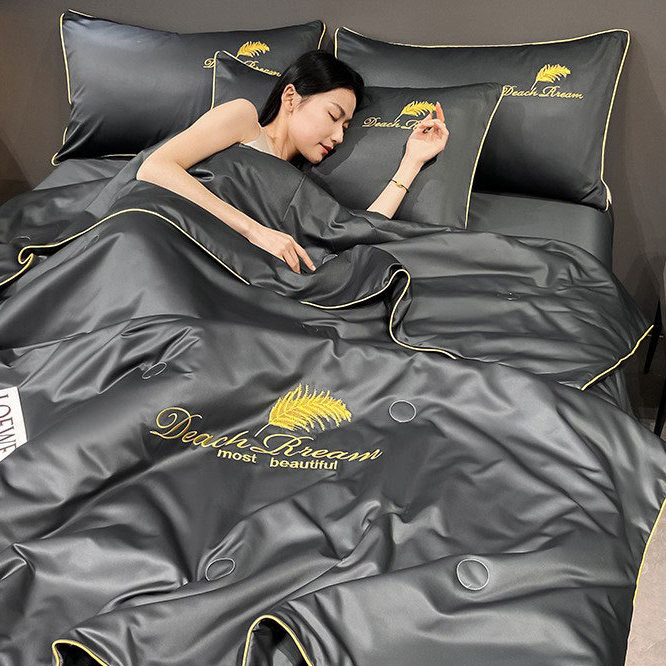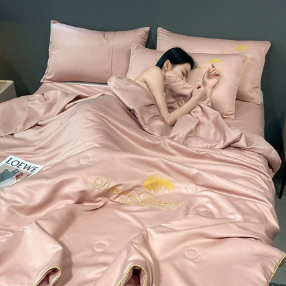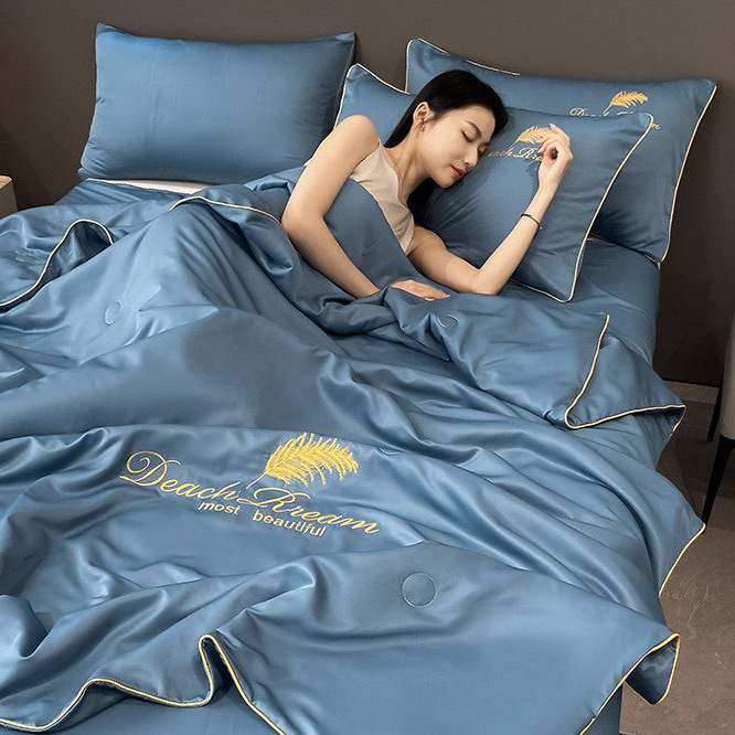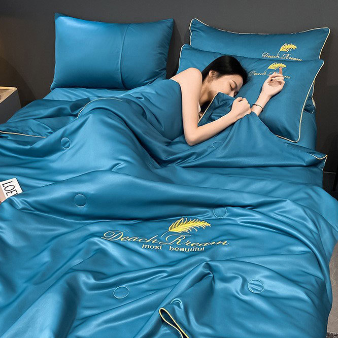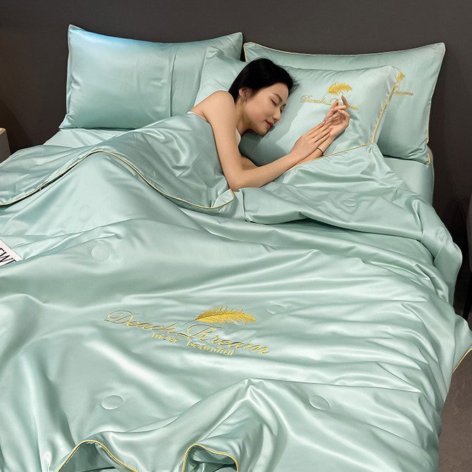Ice silk air conditioning quilt fourpiece set cool feeling student dormitory